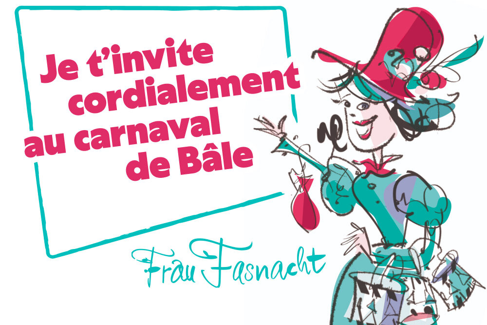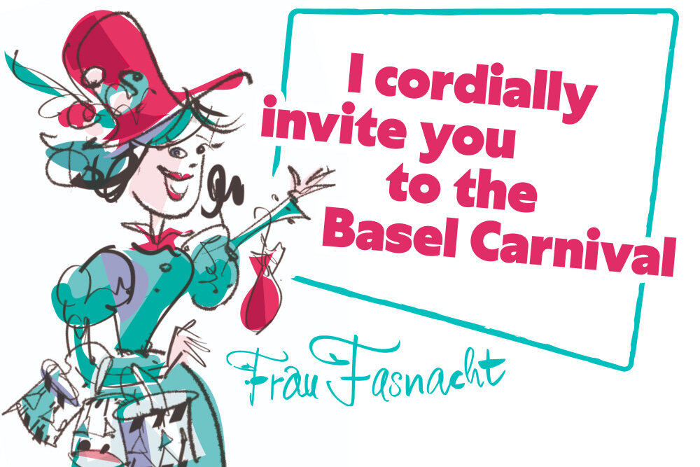 Frau Fasnacht lädt dich herzlich an die Basler Fasnacht ein. Hier findest du die Einladung in verschiedenen Sprachen.